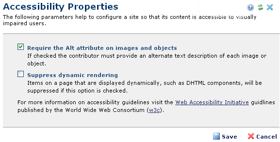 This dialog also provides convenient links to W3C accessibility guidelines.