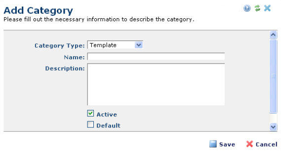 You are here: Administrators Reference > Subsite Administration > Templates > Base Templates > New Base Template > Add Category