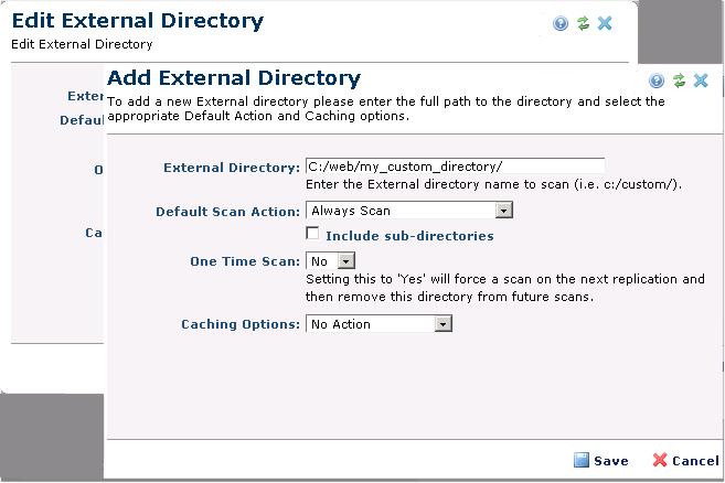 You are here: Administrators Reference > Site Administration > Replication > External Directories > Add External Directory