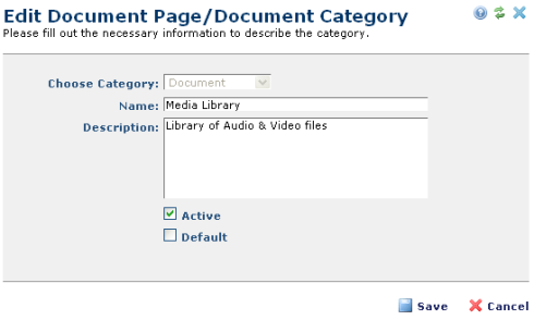 You are here: Administrators Reference > Site Administration > Content Classification > Content Categories > Manage Content Categories > Add Page/Document Category