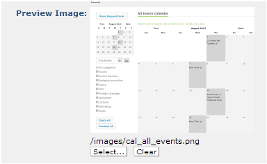 This image displays on mouseover for this render handler in the Manage Layouts dialog. Clicking Clear removes the current image. Clicking Select displays the Choose Image dialog for selecting or uploading a new preview image.