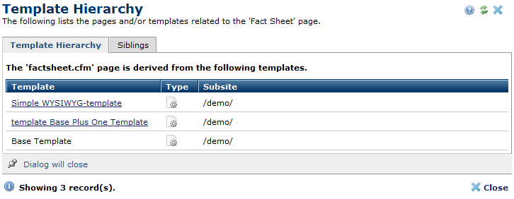 Depending on site size and requirements, it is not uncommon for CommonSpot pages to derive from three, four, or five layers of templates.