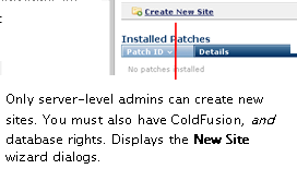 You are here: Administrators Reference > Creating, Managing, and Deleting Sites and Subsites > Site Creation