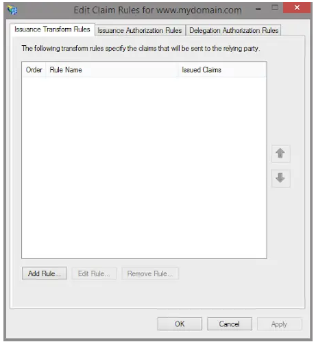 The following outlines a simple ADFS configuration using default options. This assumes that the ADFS server is fully configured and ready for establishment of relying party trusts.