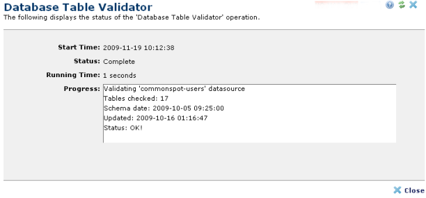 Use this utility to validate the database schemas against the current version of CommonSpot without upgrading or manually calling a file.