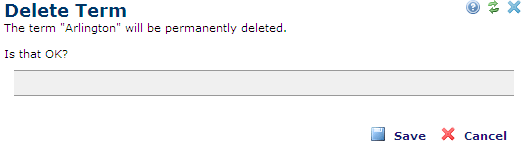 Click Save to delete the specified term or Cancel to exit without deleting.