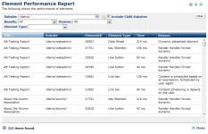 Results: Pick from the dropdown to display All Elements, or filter by Good, Fair, or Poor performance. Criteria for these categories are defined in Performance Report Settings.