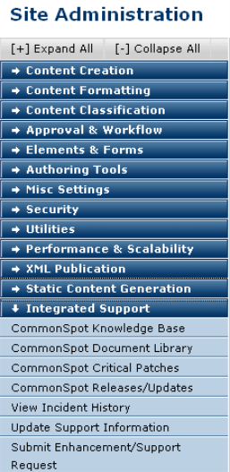 Integrated Support gives you and users at your site convenient access to these CommonSpot resources: