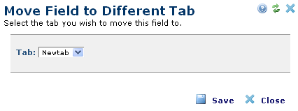 Use this dialog to move a selected field to another tab defined within a Custom Element.