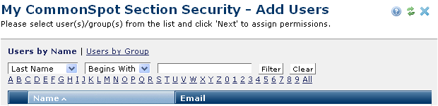 You are here: Administrators Reference > Site Administration > Site Properties/Settings > My CommonSpot Sections > My CommonSpot Section Security > My CommonSpot Sections Security Add Users