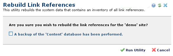 Access this dialog from Site Admin - Utilities - Site Tools. Click Rebuild Link Reference Data.