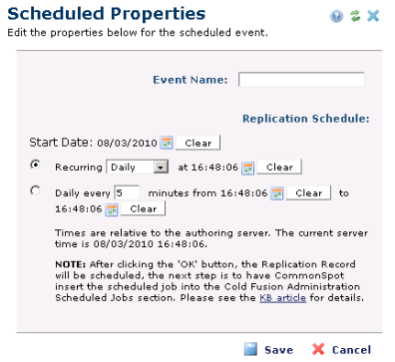 Note: Times are based on the Authoring Server. It is recommended that you use a time service to sync authoring server and any read-only production servers.