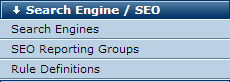 To manage a site’s SEO reporting groups, select the SEO Reporting Groups option from the Search Engine/SEO section of the Site Administration Dashboard, as shown above.