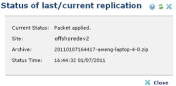 This resulting Status of last/current replication dialog also displays the date and time of the last successful execution of the process.
