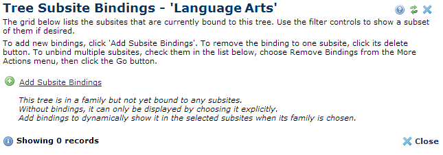 You are here: Administrators Reference > Site Administration > Trees > Manage Trees > Tree Subsite Bindings