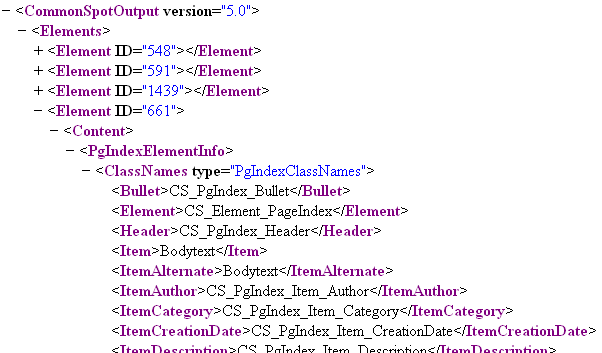 Depending on the browser type, you can typically expand and collapse XML nodes by clicking on the plus (+) or minus (-) icons. Expanding the fourth Element displays detail for the Page Index Element.
