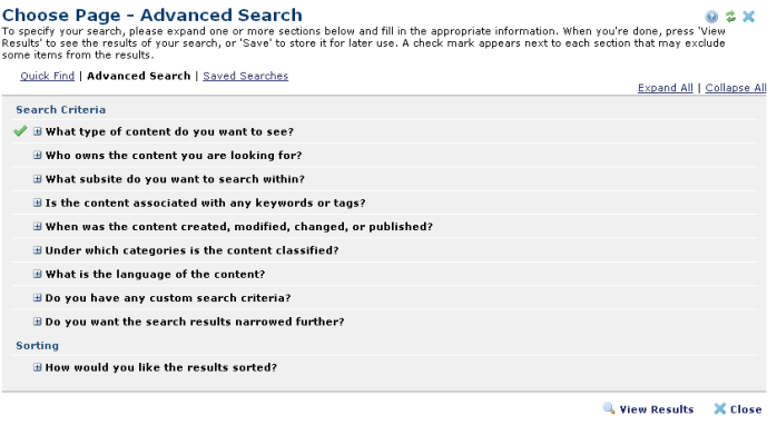Note that you can use custom criteria to limit the number of child subsites searched, as described below.
