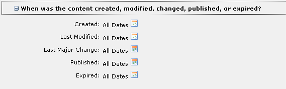 You can specify multiple attributes for searching in CommonSpot. Use this dialog to refine document or file searches. (Use Find Images – Advanced Search, Create New Image Search, or Edit Saved Image Search to construct or revise advanced queries for images.)
