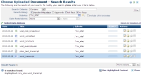 This dialog displays for selection operations, such as Insert Link when you choose uploaded document as the target type.