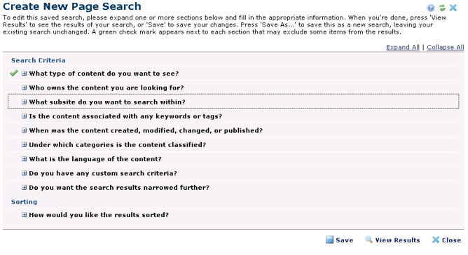 Use the Expired option to define criteria for viewing expired pages.