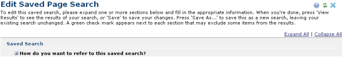 This dialog displays in edit mode for existing page searches, with the addition of a field for identifying your saved search. Click How do you want to refer to this saved search to rename .