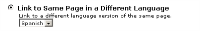 In sites where multiple languages are used, the Insert Link dialog provides the author with the ability to link to the same page, but in an alternate language. This allows for easy switching by the page viewer between the various language-specific versions of content.