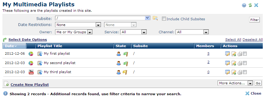 You are here: Contributors Reference > CommonSpot Menus > My Content > My Multimedia Playlists