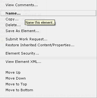 To enable creation of a jump link, you must first provide a name for the target Element. In Author mode, click the Element Tool icon and select Name from the dropdown menu.