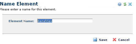 The Name Element dialog displays.Enter a unique name without spaces or special characters. Elements on the same page must have unique names.