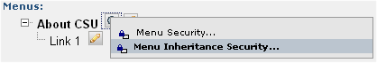 Access this dialog in author mode by choosing Popup Menus from the Manage menu, and selecting Menu Inheritance Security as shown below.