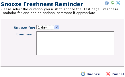 You can choose to postpone freshness reminders you receive. Set the appropriate delay time from the Snooze for dropdown. Add an optional comment.