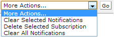 You can optionally select one or more notifications or subscriptions, pick from the following in the More Actions dropdown, then click Go to process multiple subscriptions.