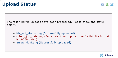 CommonSpot reports status for image and other file uploads.