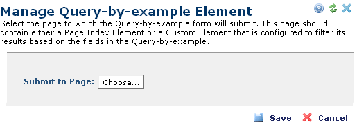 The Manage Query-by-example Element dialog prompts you to select a page for displaying Query-by-example results.
