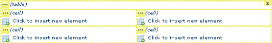 When you expand a Tabular Layout Element to highlight its cells, CommonSpot renders a border around each cell and displays an icon for each individual cell allowing the contributor to access the individual cell’s properties.
