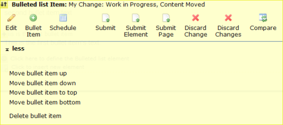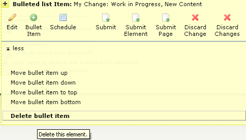 You are here: Elements Reference > Link & List Elements > Bulleted List Element > Re-Ordering and Deleting List Items and Headers