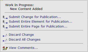 To submit an individual entry for publication, click work in progress icon and select Submit Change for Publication.