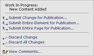 When submitting the Link Bar Element for publication, it is possible to submit each link entry individually. On the page containing the Link Bar Element, click the